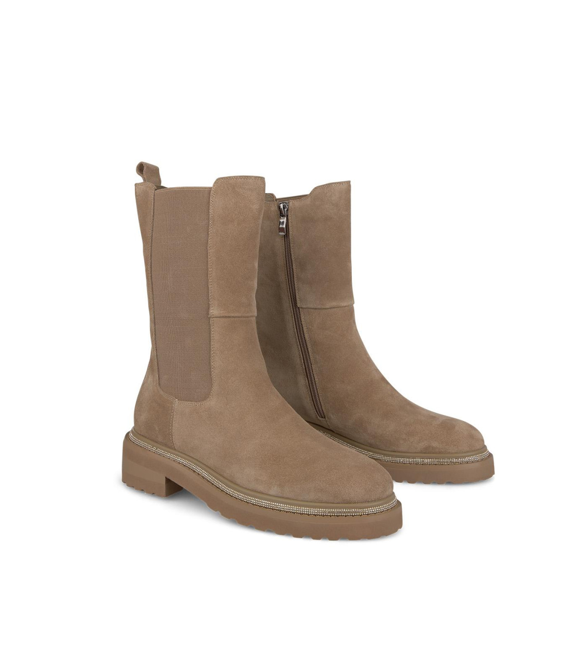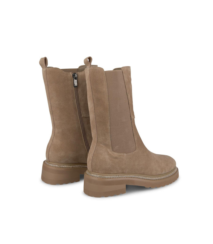 Stivaletti realizzati in suede con punta arrotondata. Piattaforma piatta. L'altezza del tacco è di 5 cm.