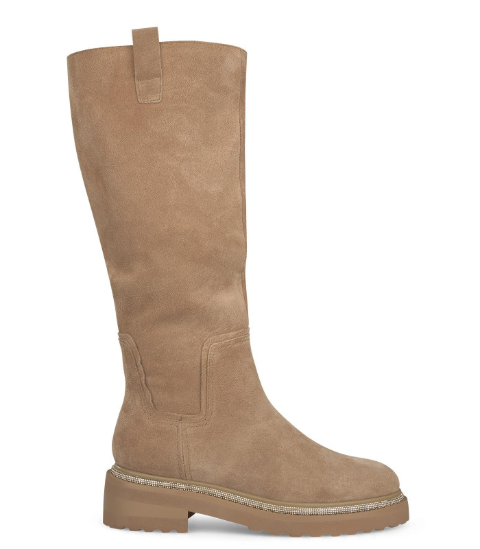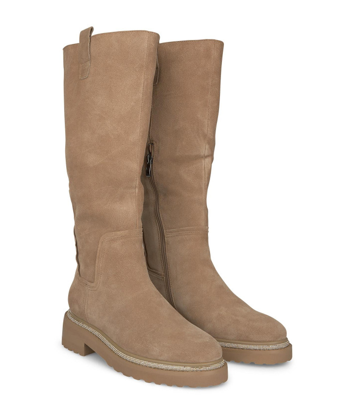 Stivali 100% pelle. Dettaglio strass sulla suola. Chiusura con cerniera invisibile. L'altezza del tacco è di 5 cm.