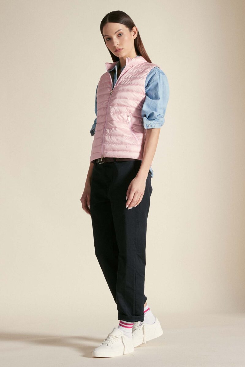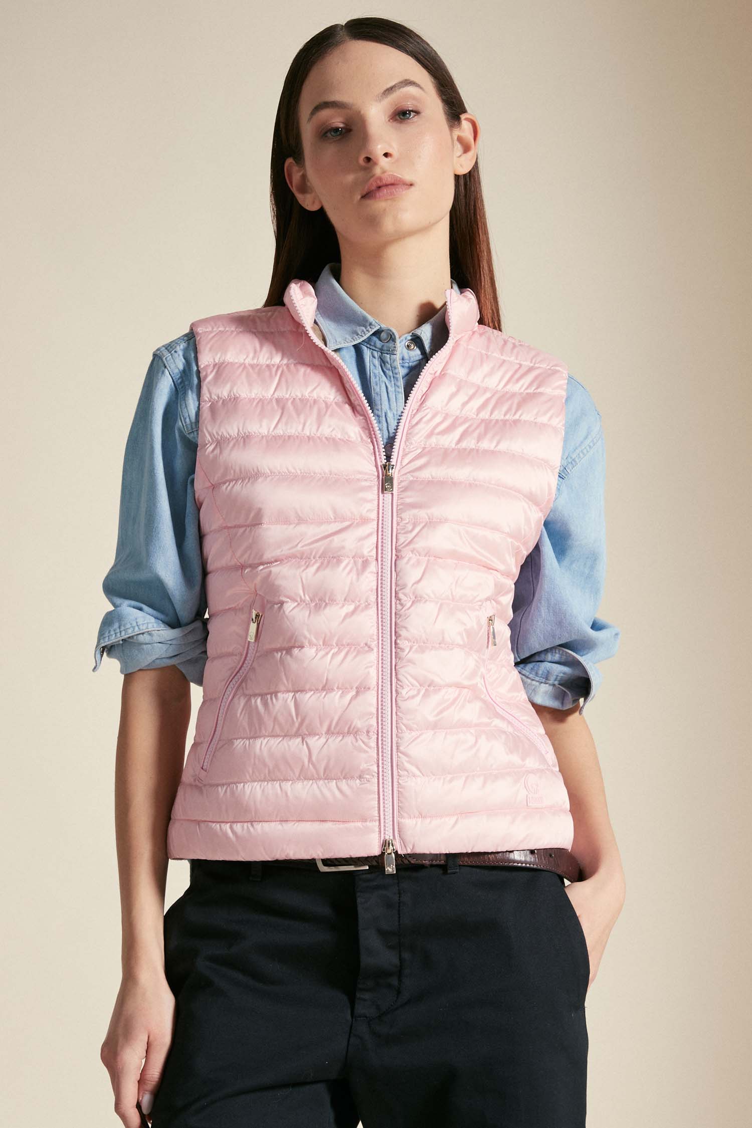 Gilet rosa pastello realizzato in tessuto leggero nylon cal e caratterizzato da imbottitura in vera piuma naturale certificata 800 fill power. Il gilet ha una vestibilità regolare, ed è caratterizzato da chiusura con doppio cursore in metallo oro chiaro, zip e logo in tono. Il Paprika è un best seller Ciesse Piumini ed è proposto in diverse tonalità per la stagione Primavera/Estate.