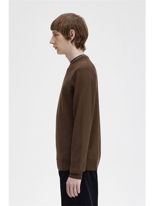 Il nostro classico maglione girocollo è realizzato in misto lana merino di provenienza etica e cotone per offrire calore, resistenza e un tocco di lusso discreto. Realizzato nei caratteristici colori Fred Perry con doppia riga all'interno del collo, questo modello è un capo essenziale da indossare tutto l'anno. Ideale per il riscaldamento sui campi da tennis o negli abbinamenti a strati.