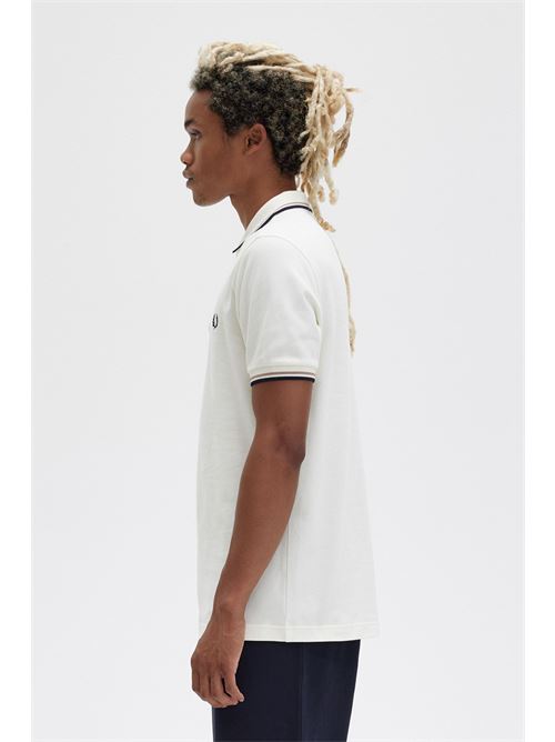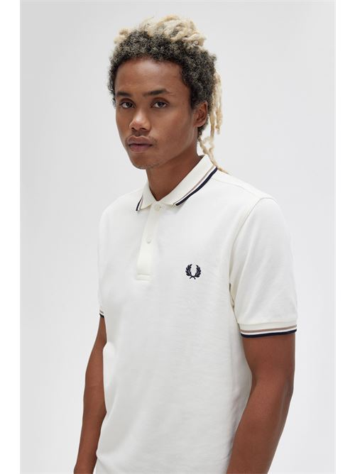 Polo color ecru con bordino nero e Khaky