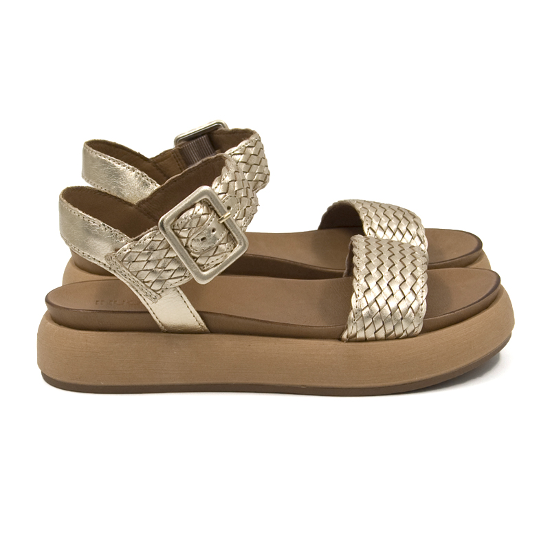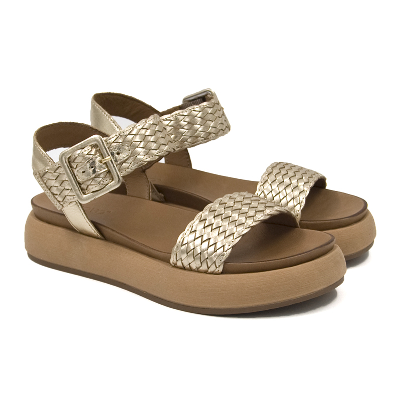 Sandali donna Inuovo con comoda suola platform in gomma. Fascia anteriore in pelle con design ad intreccio e chiusura con cinturino alla caviglia.