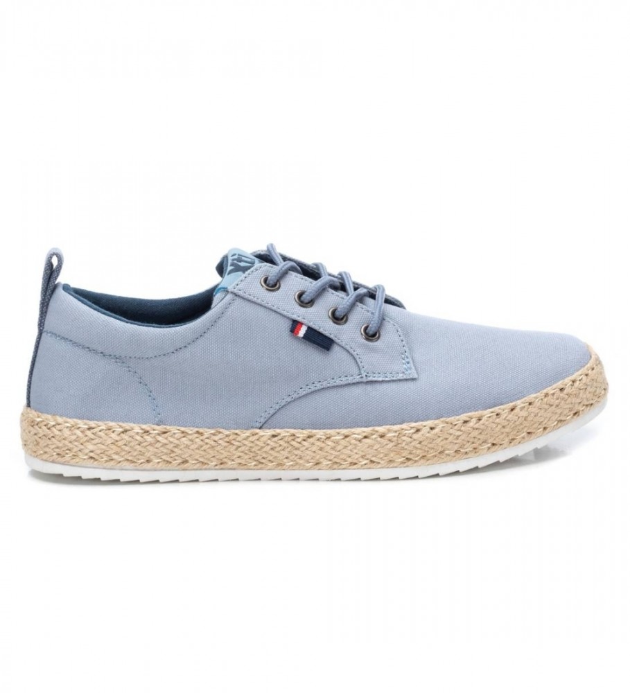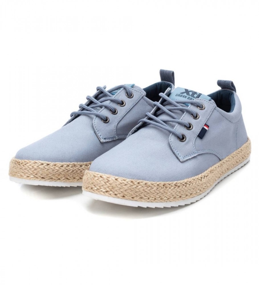 Scarpa da uomo con suola in juta, del marchio Xti. Realizzato in tessuto tipo tela. Chiusura con lacci. Suola in gomma antiscivolo. Questo modello è stato certificato vegano dall'organizzazione mondiale PETA (Organizzazione per i diritti degli animali).