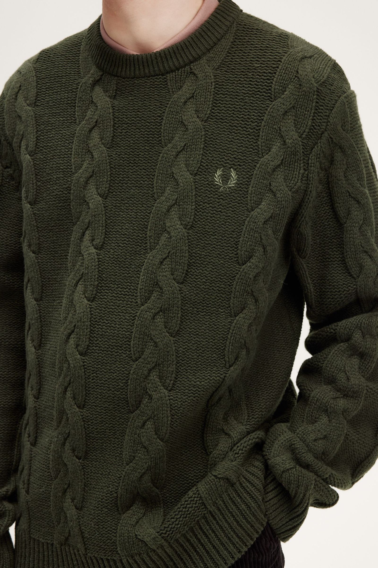 Un lussuoso maglione in misto lana di agnello che celebra la leggendaria lavorazione in maglia a trecce spesse.