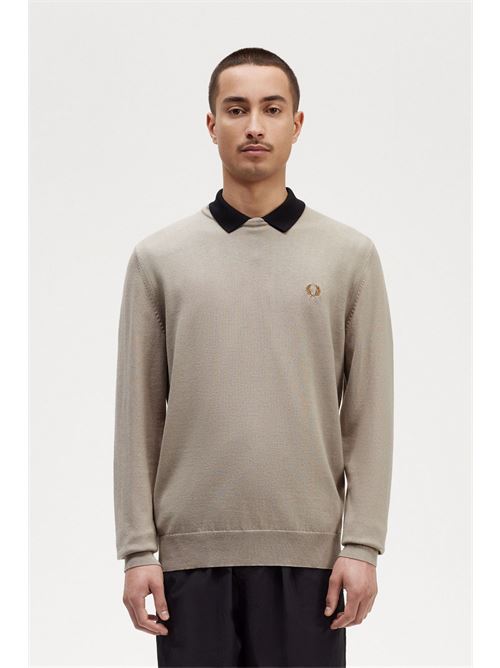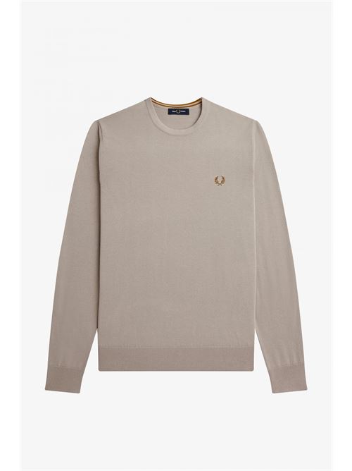 Il nostro classico maglione girocollo è realizzato in misto lana merino di provenienza etica e cotone per offrire calore, resistenza e un tocco di lusso discreto. Realizzato nei caratteristici colori Fred Perry con doppia riga all'interno del collo, questo modello è un capo essenziale da indossare tutto l'anno. Ideale per il riscaldamento sui campi da tennis o negli abbinamenti a strati.