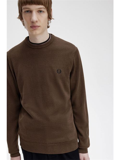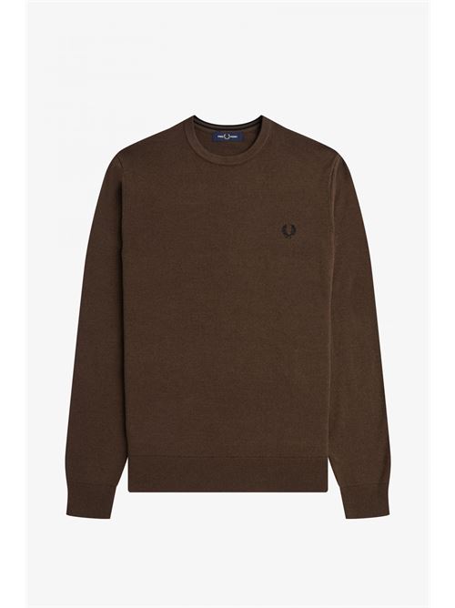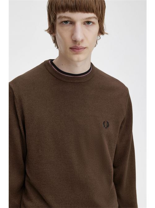 Il nostro classico maglione girocollo è realizzato in misto lana merino di provenienza etica e cotone per offrire calore, resistenza e un tocco di lusso discreto. Realizzato nei caratteristici colori Fred Perry con doppia riga all'interno del collo, questo modello è un capo essenziale da indossare tutto l'anno. Ideale per il riscaldamento sui campi da tennis o negli abbinamenti a strati.