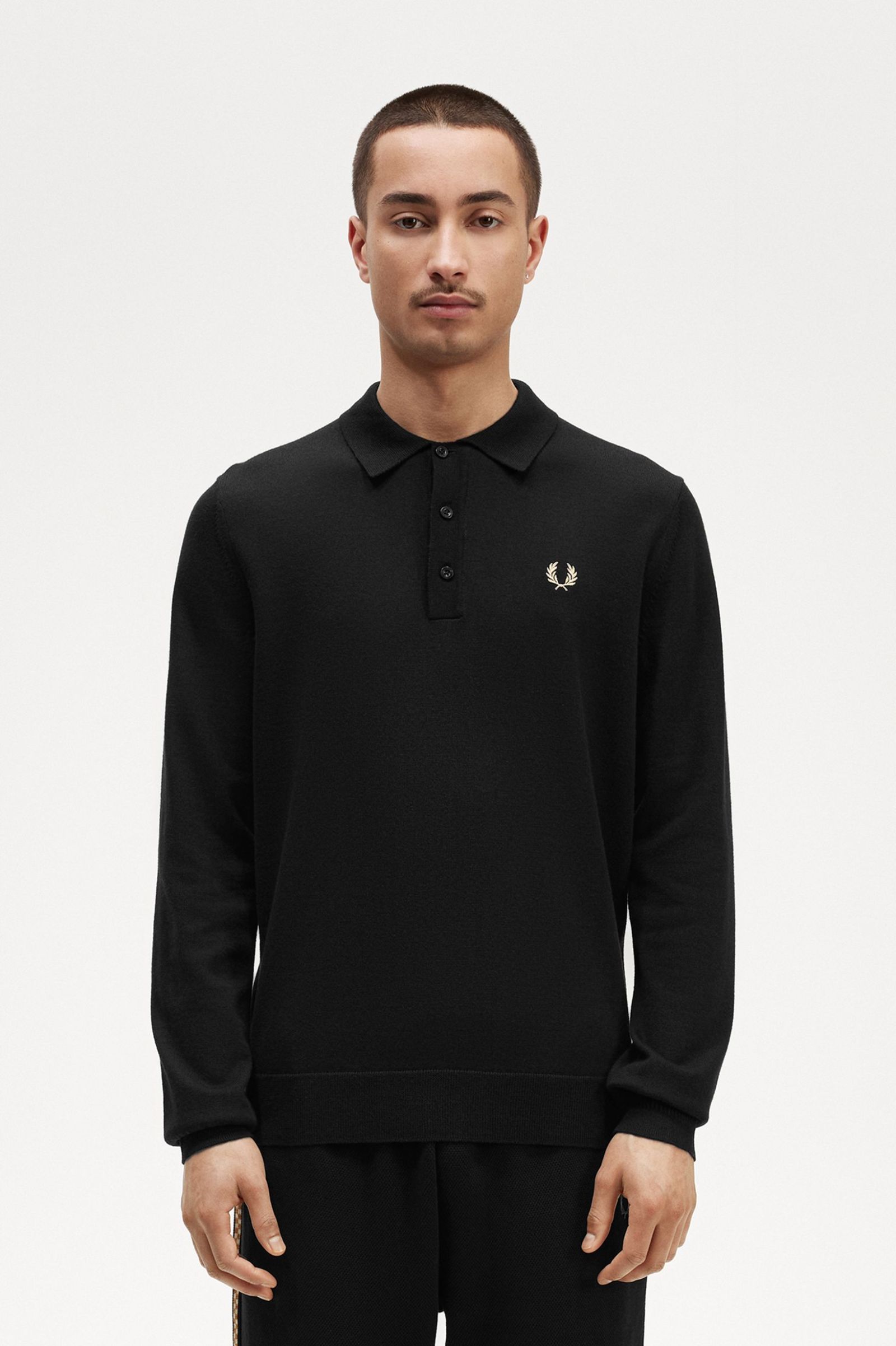 Polo a maniche lunghe in maglia di misto lana merino fine.