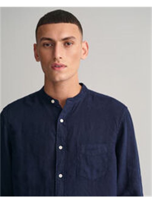 Migliora la tua collezione di camicie con questa camicia in lino tinto in capo con colletto a fascia. Questa camicia dal colletto a fascia di ispirazione rétro e una singola tasca sul petto per un look minimalista si abbina meravigliosamente ai pantaloni sartoriali e a un paio di scarpe sobrie.