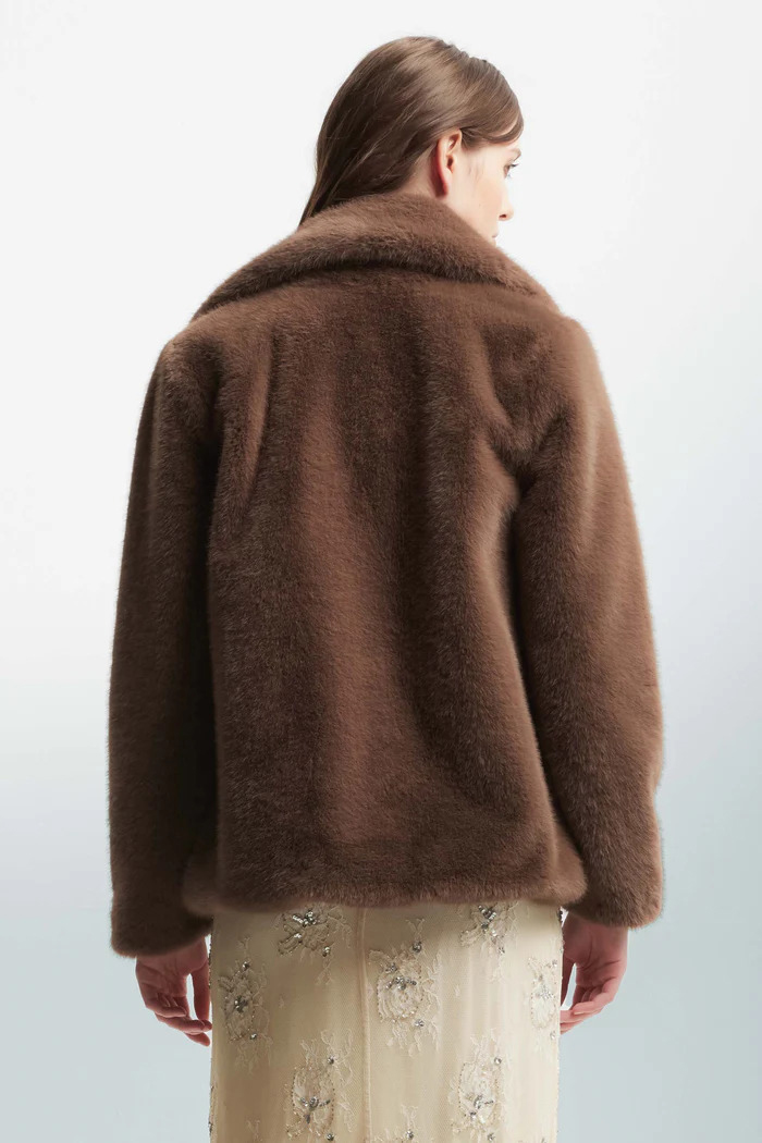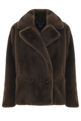 Cappotto corto realizzato in morbida pelliccia, con abbottonatura doppiopetto sul davanti. Caldo ed essenziale per un look impeccabile.